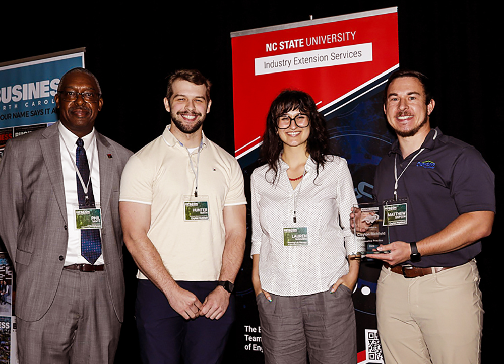 L-R: Phil Mintz, NC State University Industry Extension Services (IES); Hunter Smith, Clayton Richfield; Lauren Navarro, Wilson College of Textiles; Matthew Simpson, Clayton Richfield