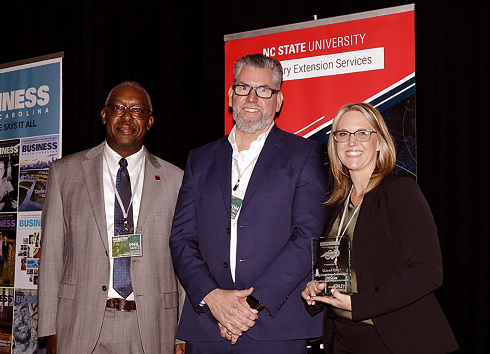L-R: Phil Mintz, Executive Director Industry Extension Services and North Carolina Manufacturing Extension Partnership; Lauren Dudley, Regional Director of Customized Training-Northeast Region, North Carolina Community College System; Courtney Silver, President