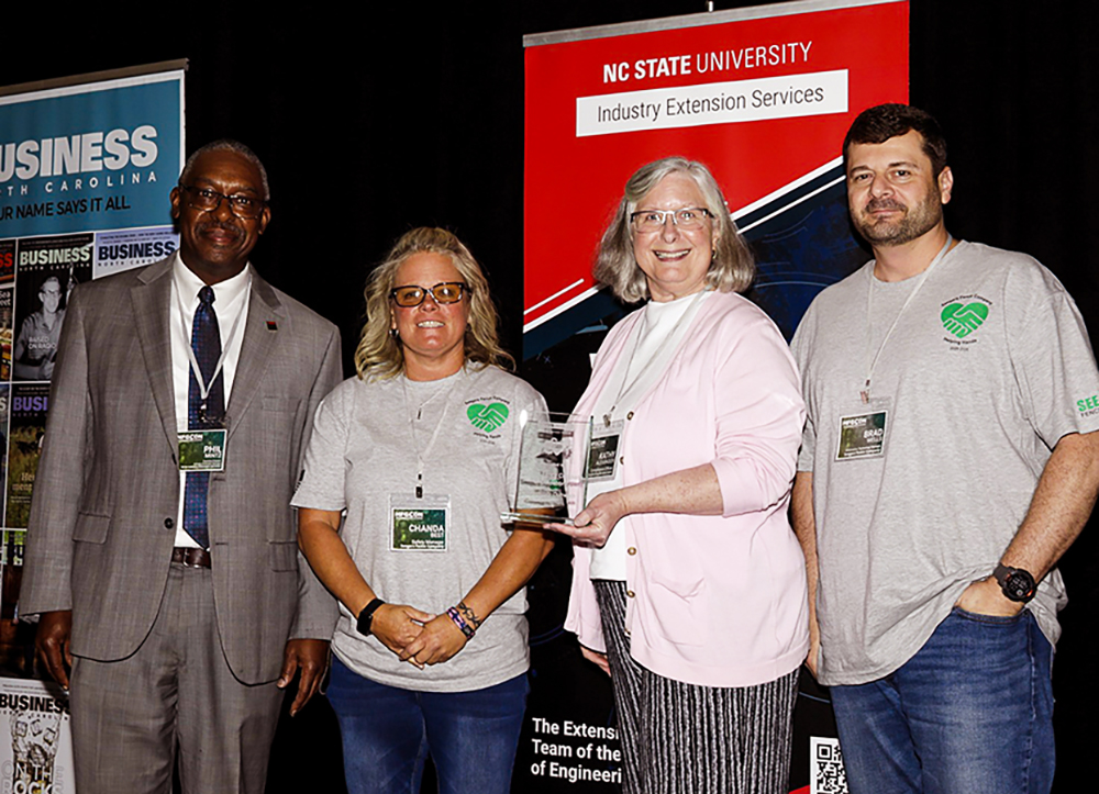 L-R: Phil Mintz, NC State University Industry Extension Services (IES); Chanda Best, Seegars Fence Company of Goldsboro; Kathy Alexander, Manufacturing Solutions Center; Brad Wells, Seegars Fence Company of Goldsboro